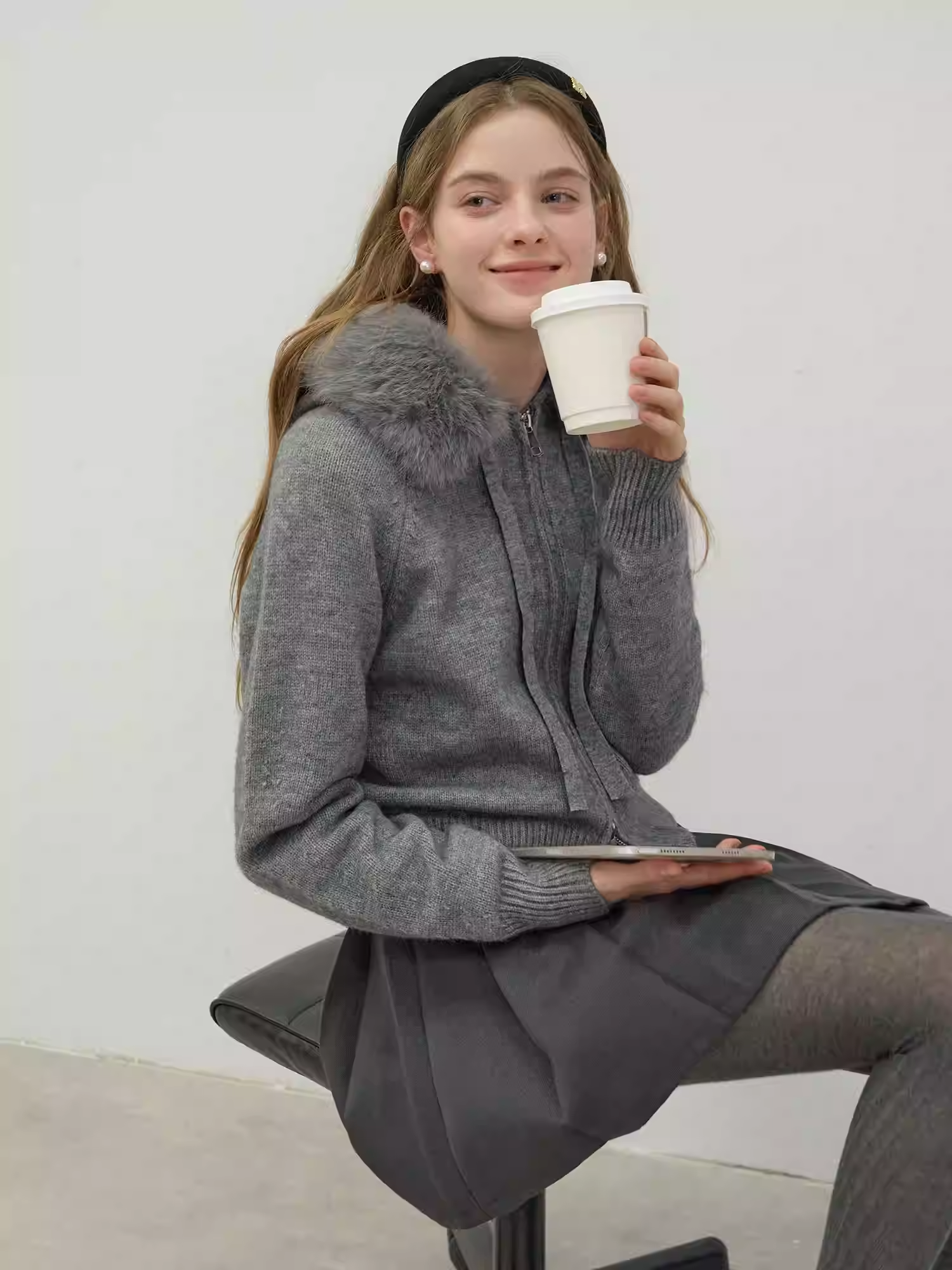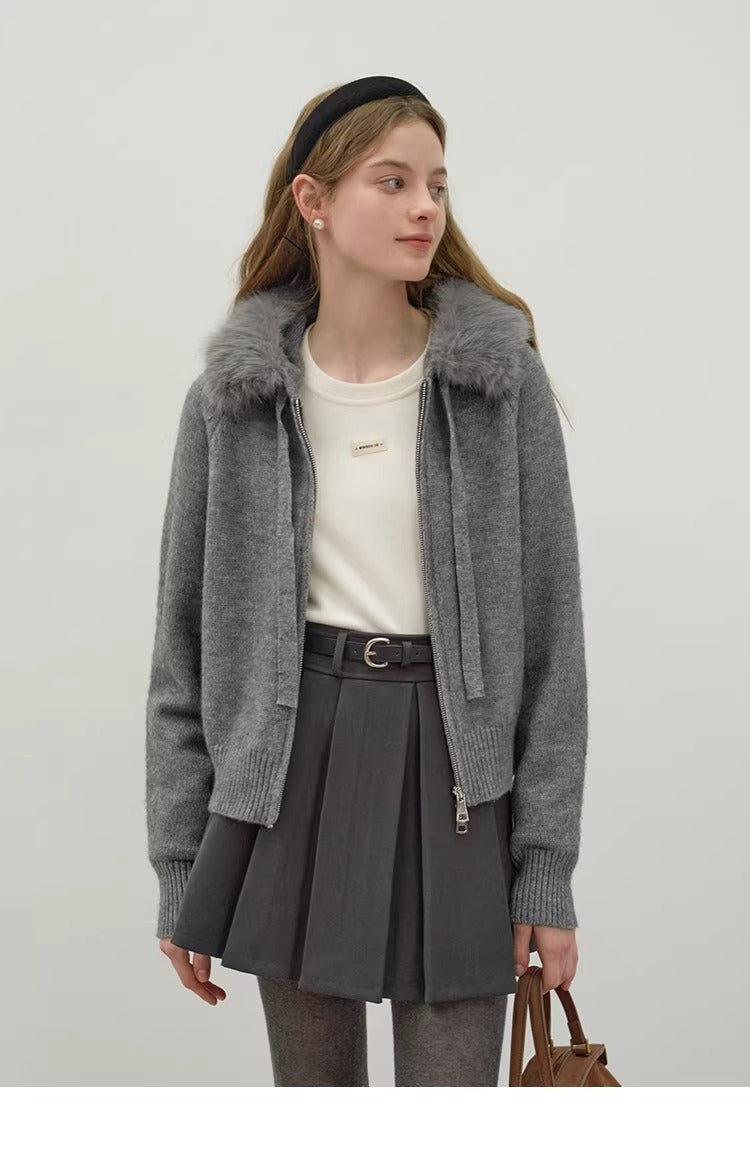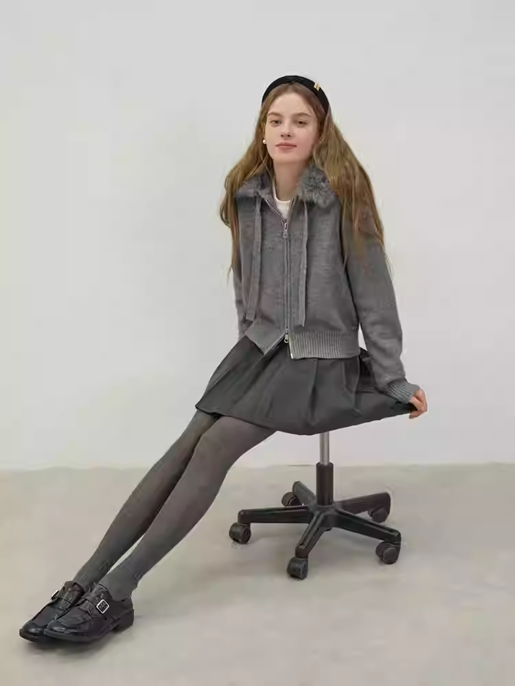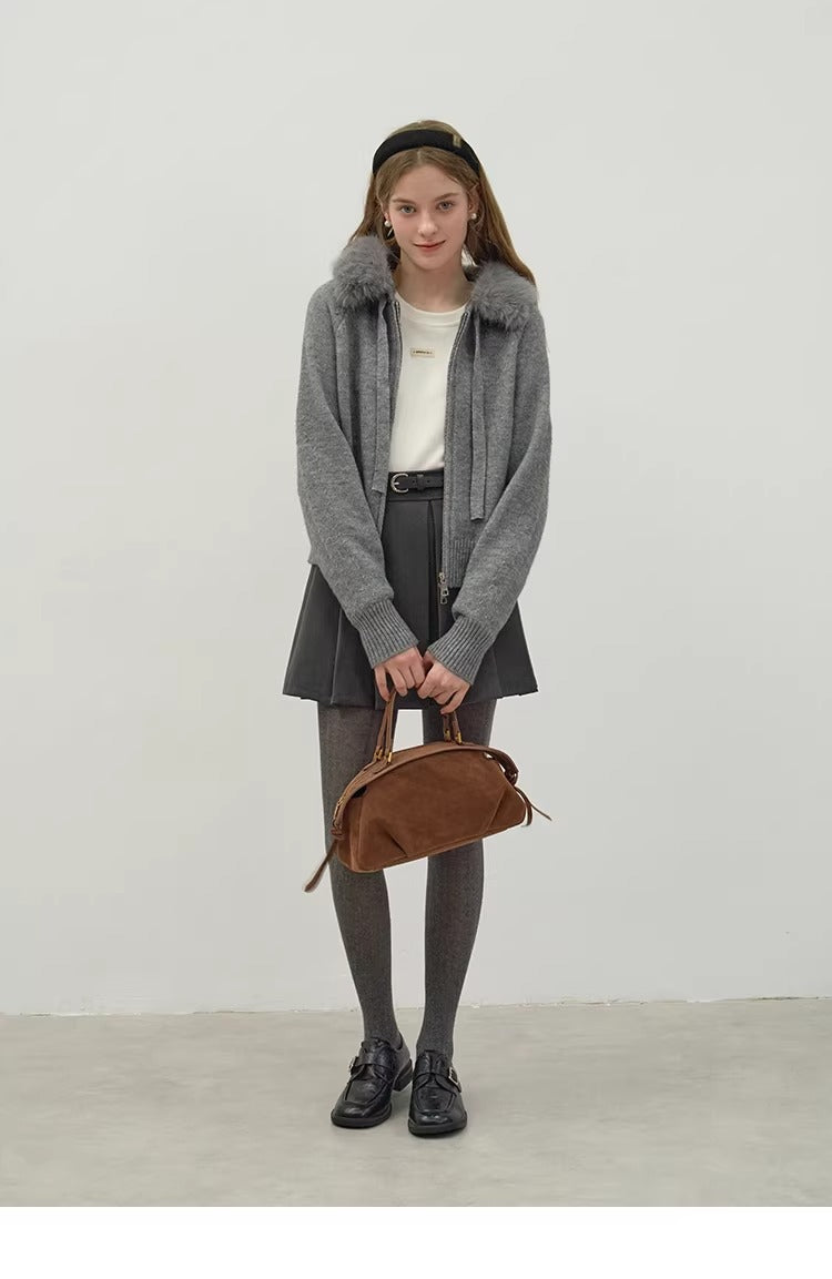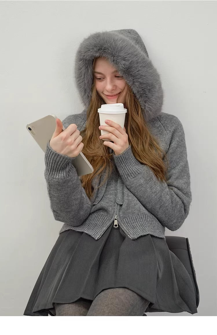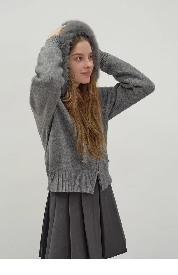 Áo Khoác Len Mũ Lông
