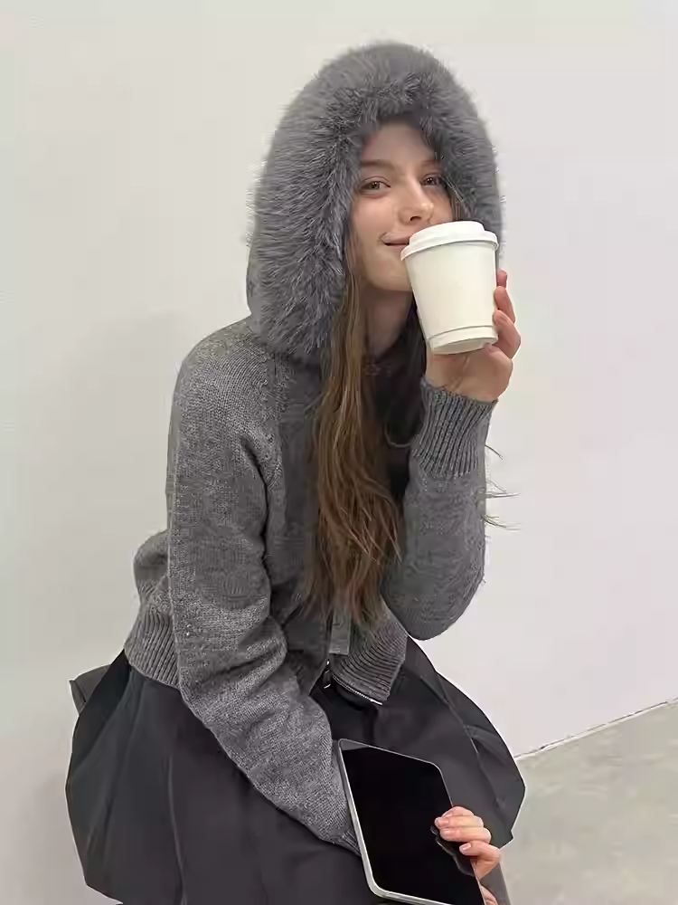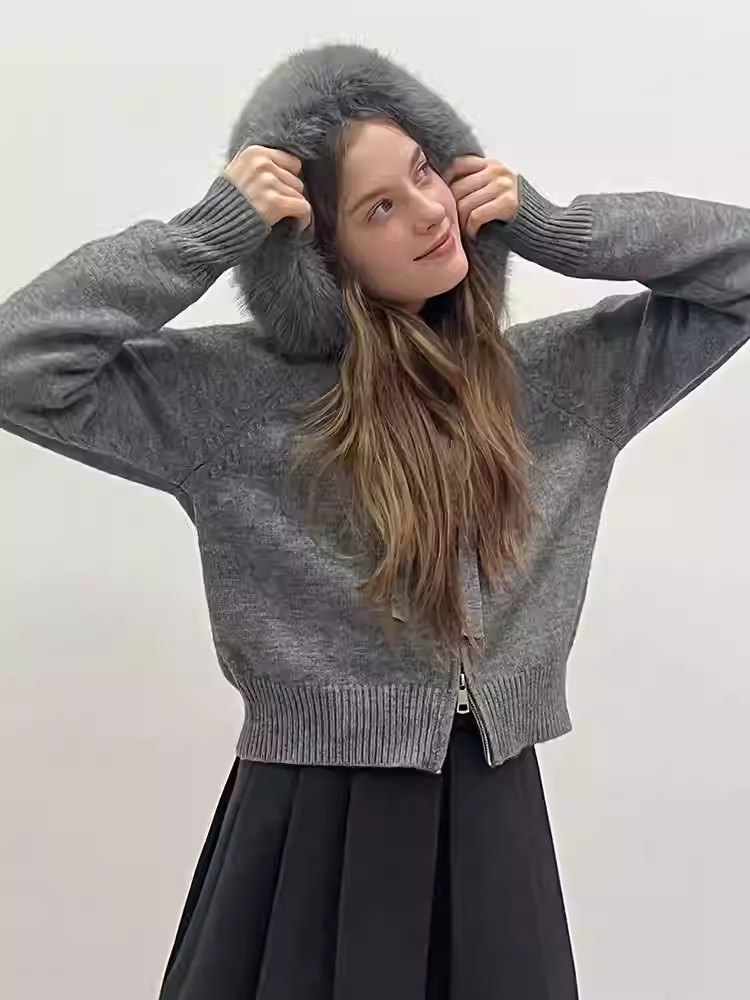 Giảm giáÁo Len Vặn Thừng Mũ Lông